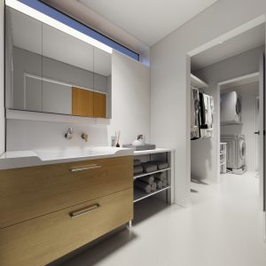 主寝室・ランドリールーム・パントリーが全て1階に集中。階段の上り下りなく、スムーズに家事が完了。「ただいま」から「ホッと一息」までがスムーズになります。