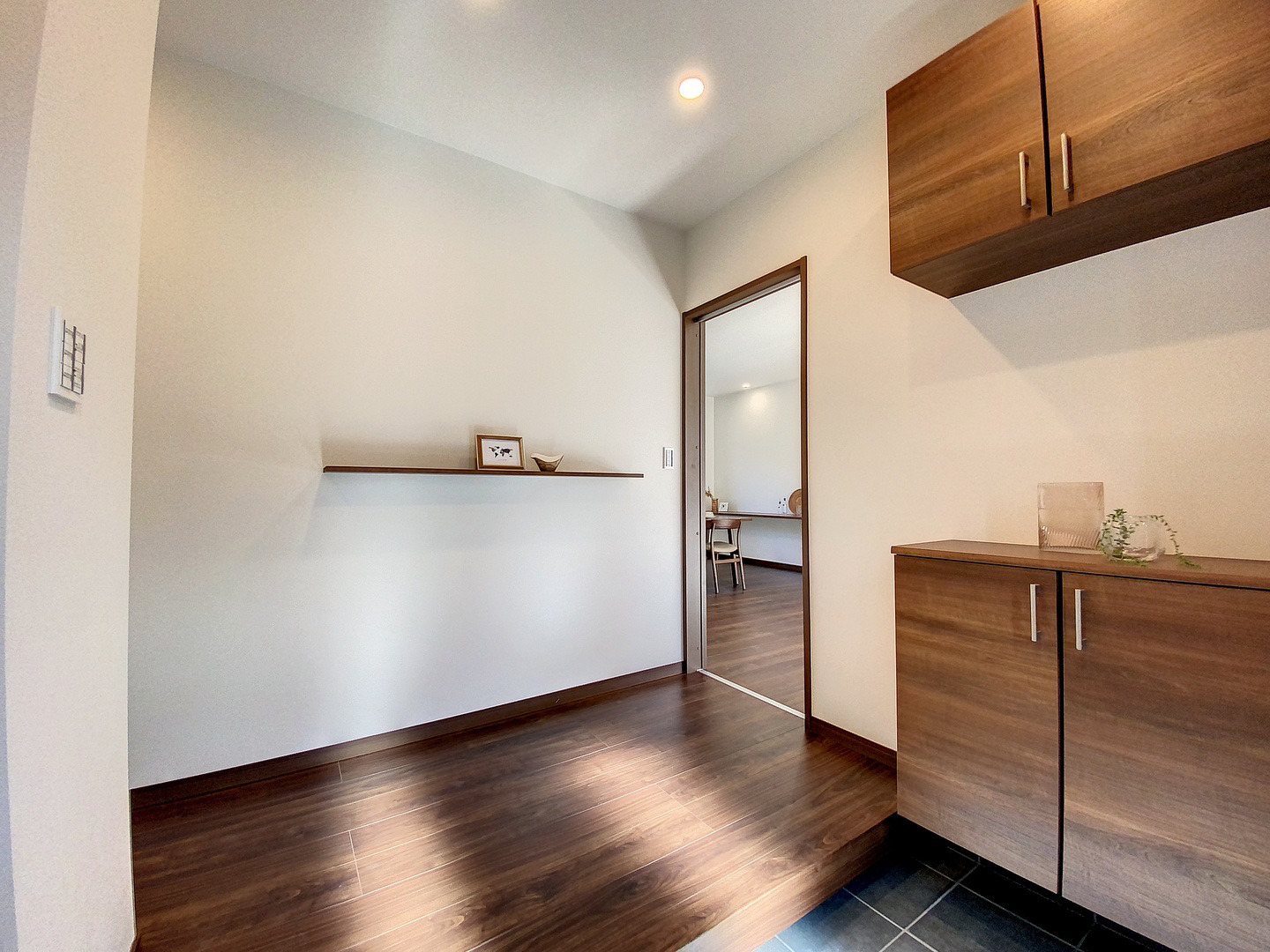 玄関前の飾り棚にはお気に入りのインテリアや季節の小物を飾るのにピッタリです。