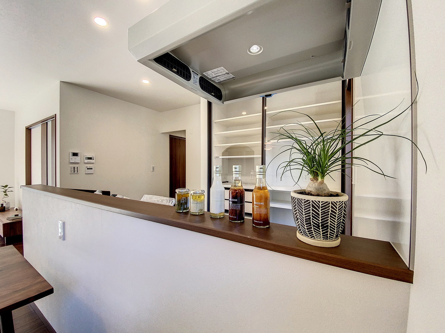 スライド式の食器棚はスタイリッシュかつスペースの有効活用が叶います。 -