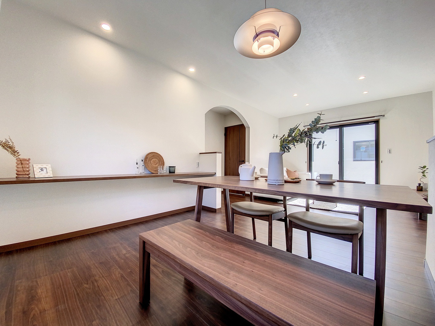 アーチ状になった開口が柔らかな印象的を与えています。