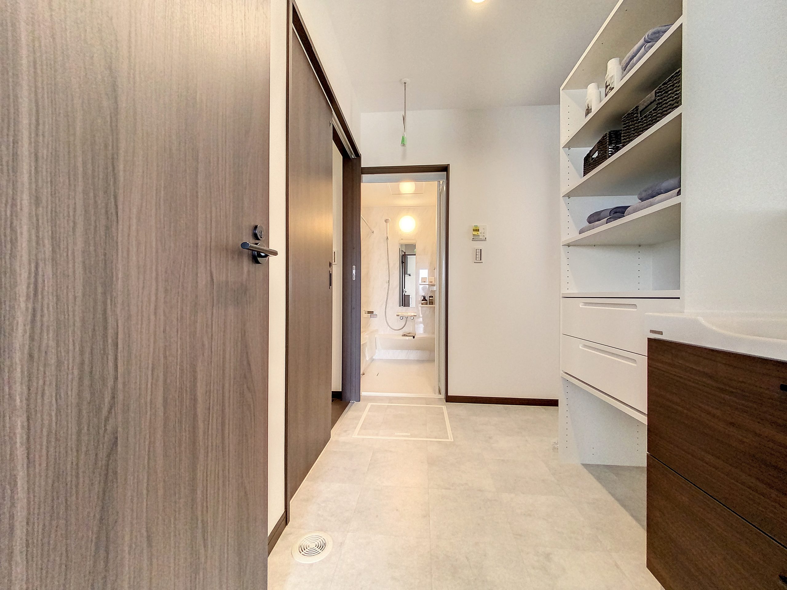 『洗濯→干す→しまう』の一連作業が、洗面室だけで完結するように設計。