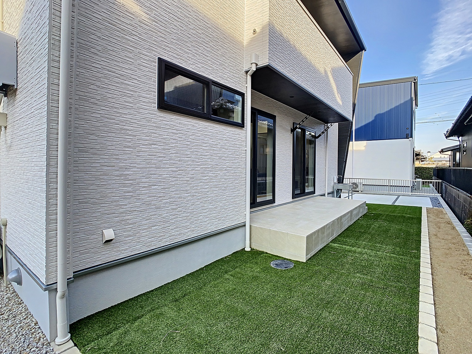 お庭にはお手入れ不要な人工芝を敷き、一年中綺麗な緑を楽しめます。