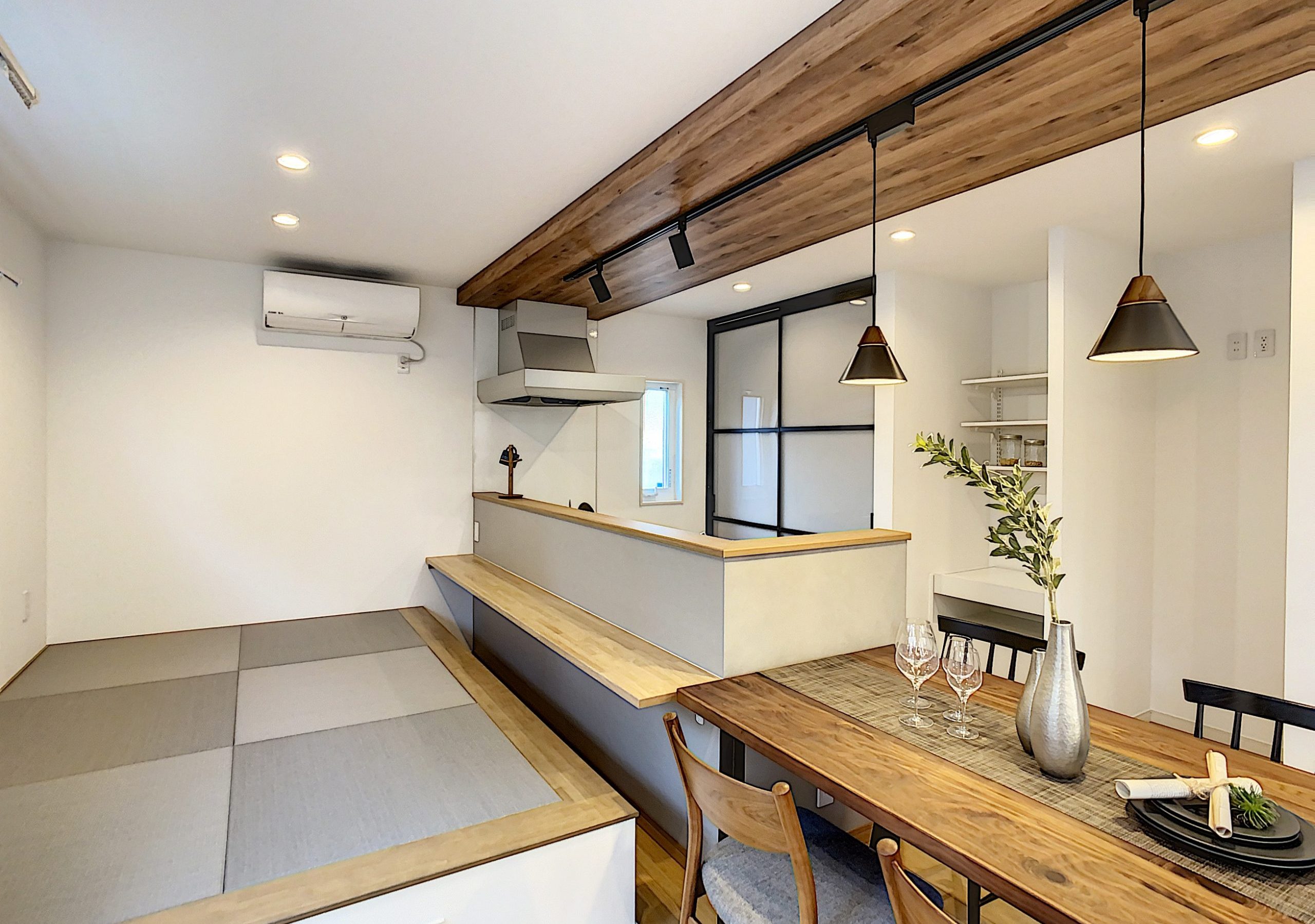 小上がりの和室が小粋な割烹料理店のよう。カウンターで晩酌をする…理想の空間が広がります。