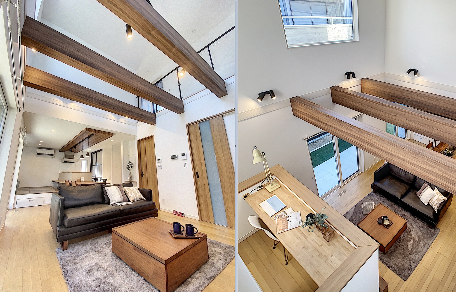 中二階のスキップフロアからはLDKを見渡せます。