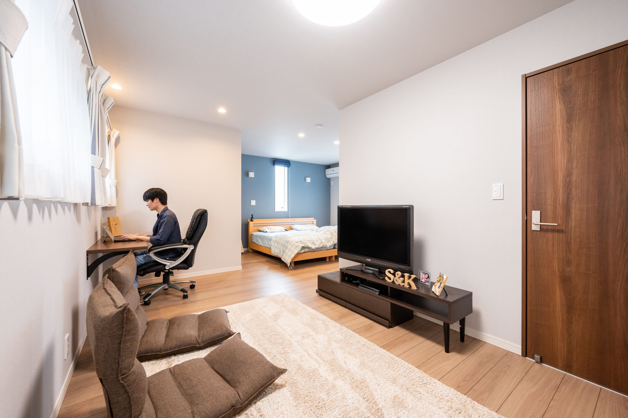主寝室横には洋室を設け、必要になったら壁を作って分けられるようにしました。