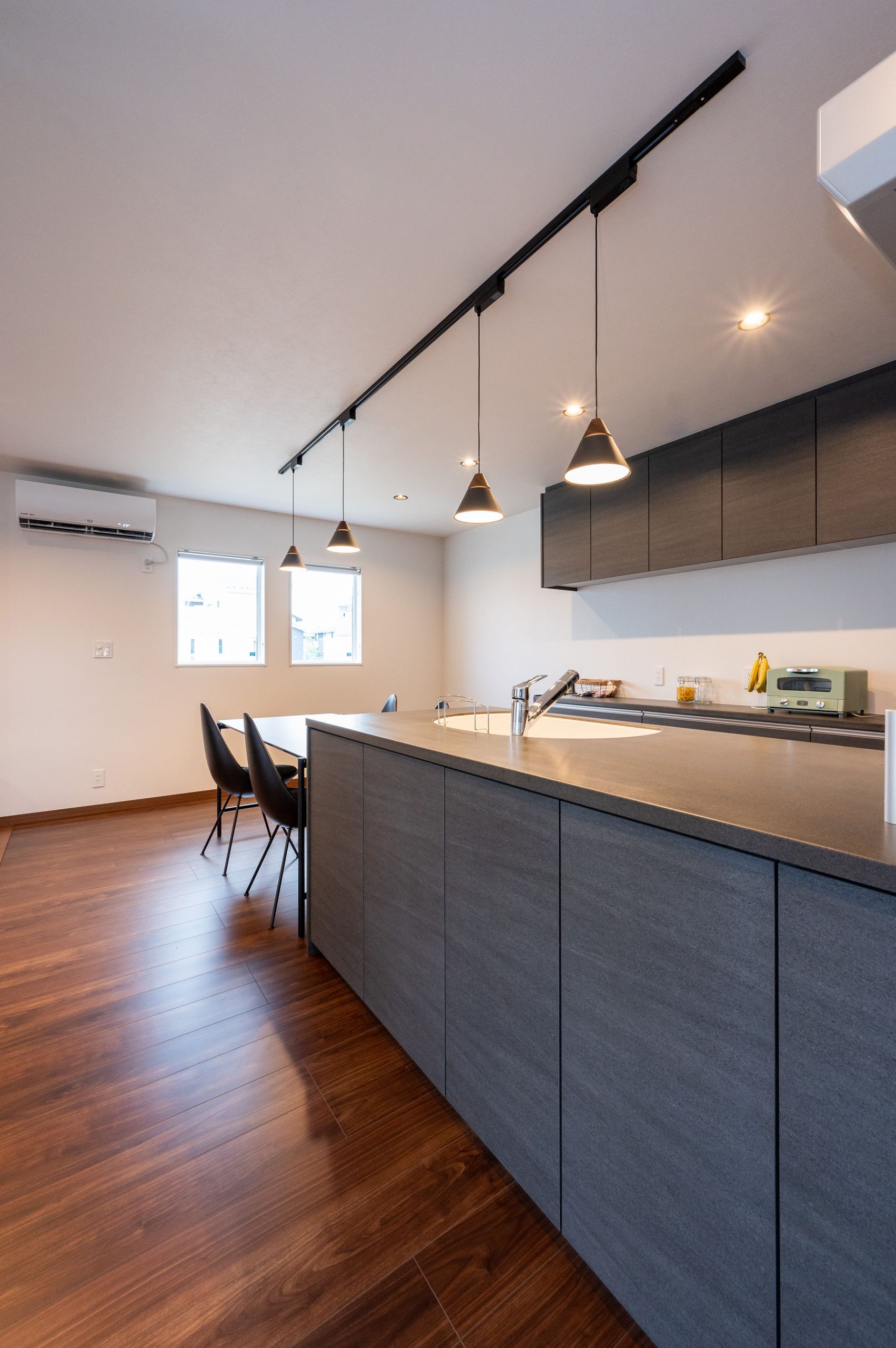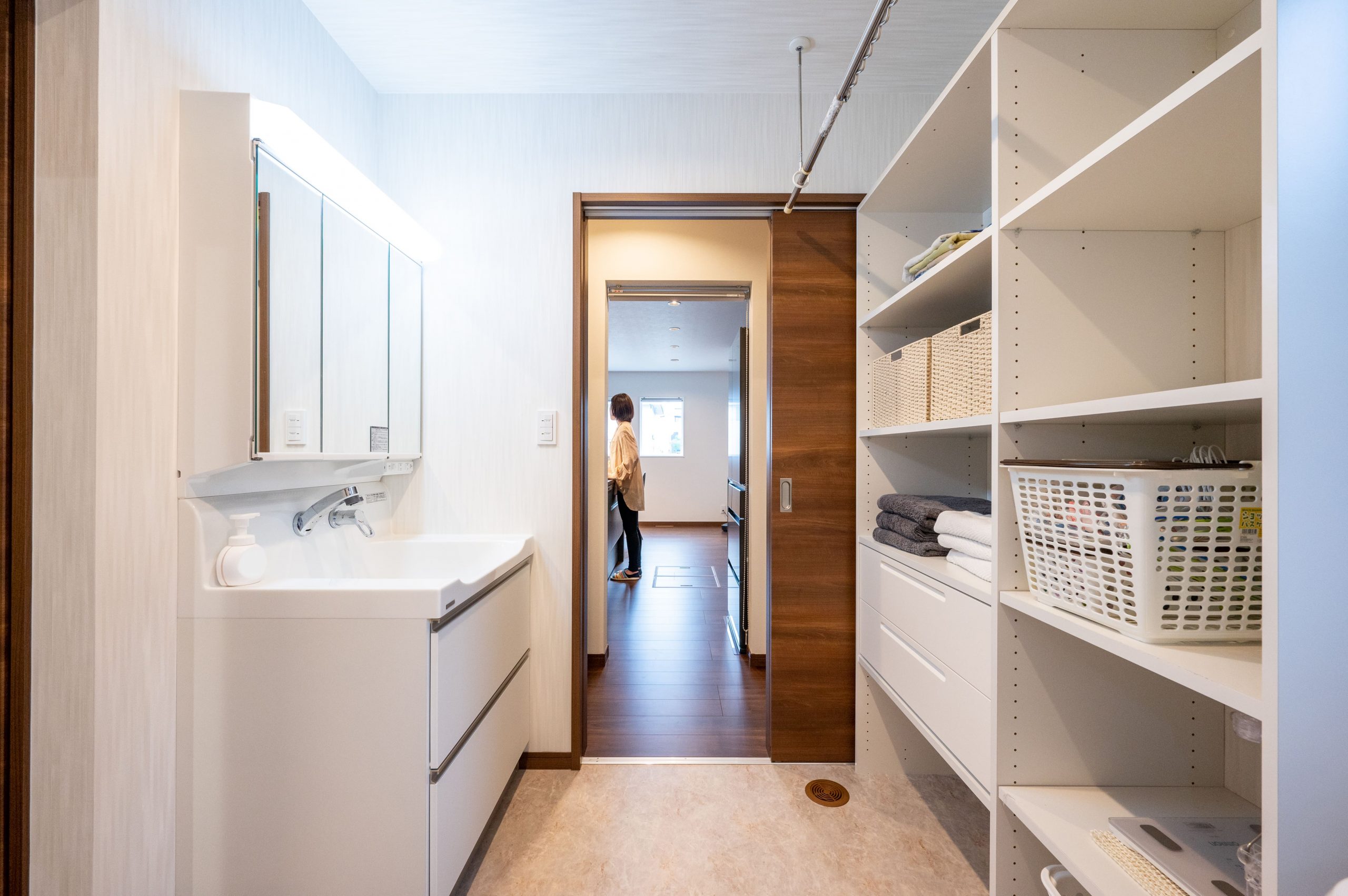 キッチン→パントリー→洗面所へ行ける家事楽動線など、デザインにこだわりながら生活のしやすさを両立。