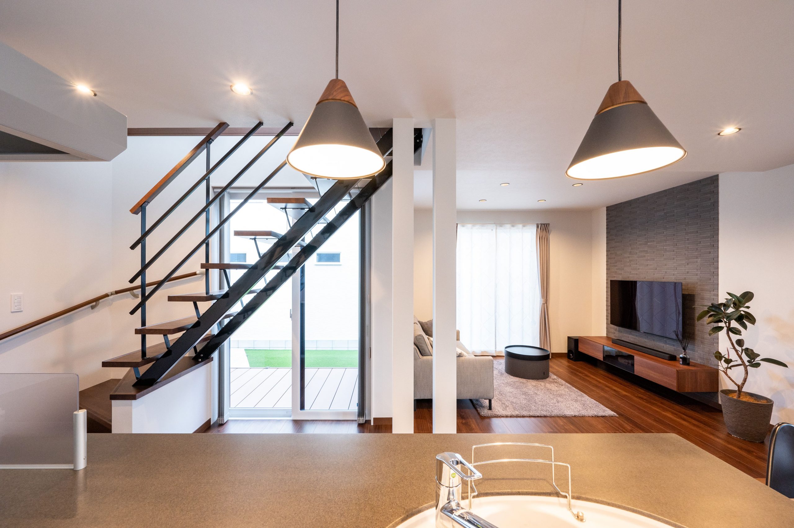 ダウンフロアリビング・アップ天井で程よい解放感を演出しました。