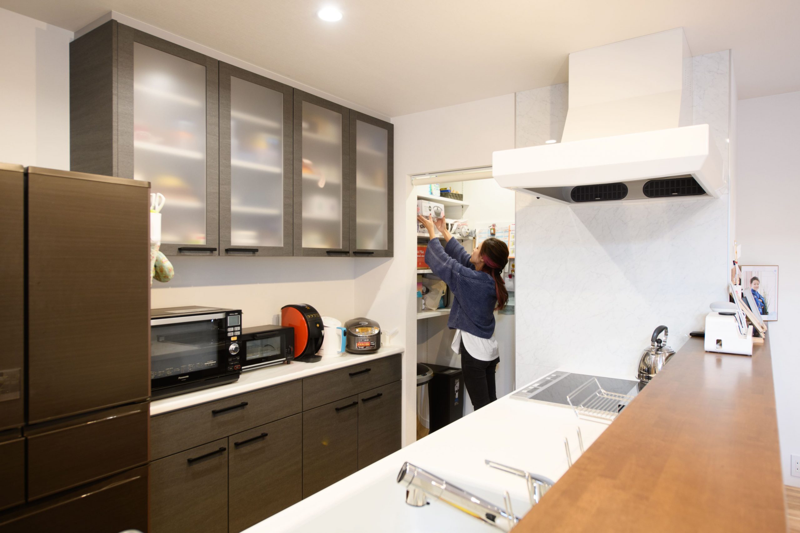 キッチン横にパントリーを設け、家事のしやすい空間にしました。