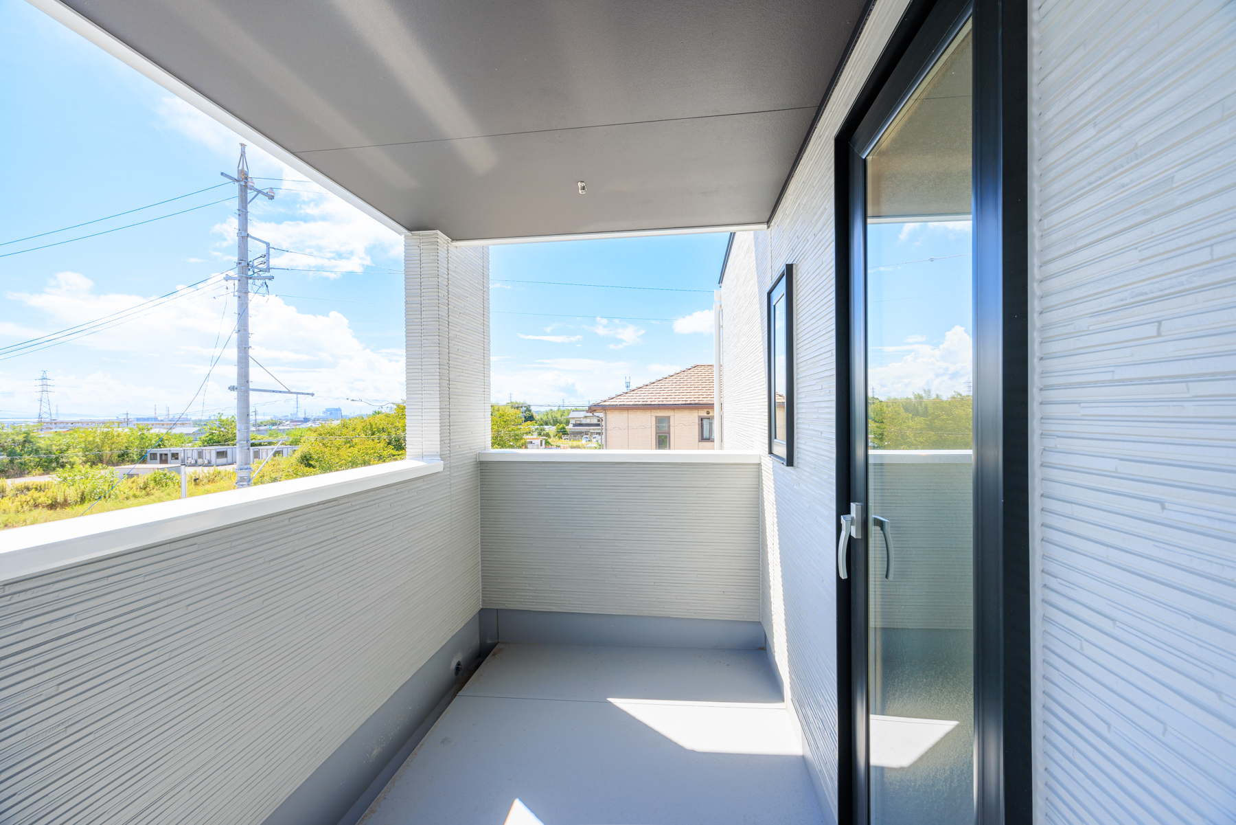 バルコニーは2階の廊下と続いているので、室内に入らず出入り出来て便利です。 -