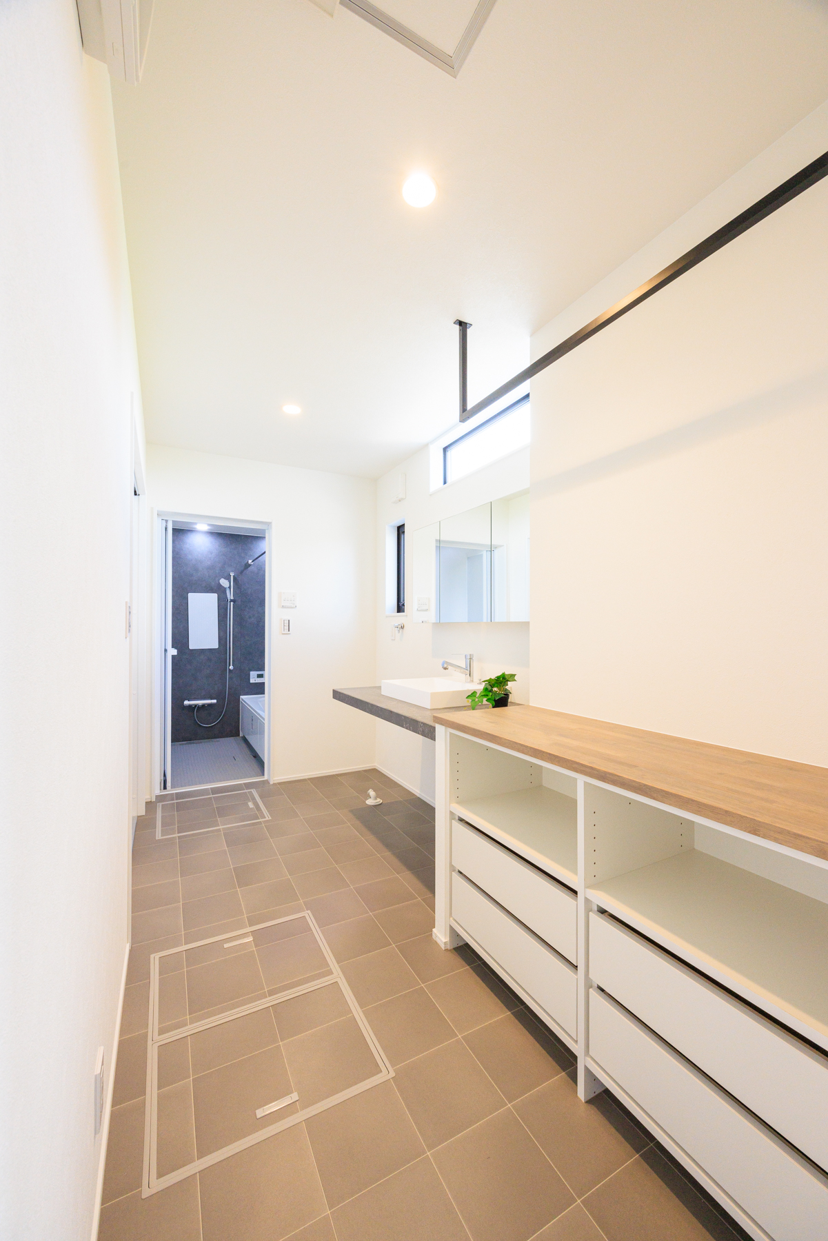 作業台や室内物干しも一箇所に設けられているので、便利で家事ラクが叶います。 -