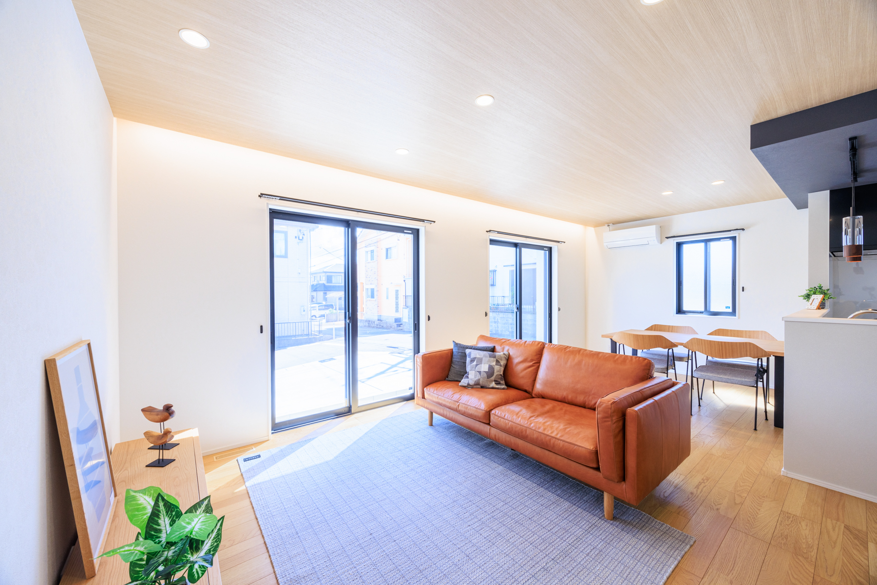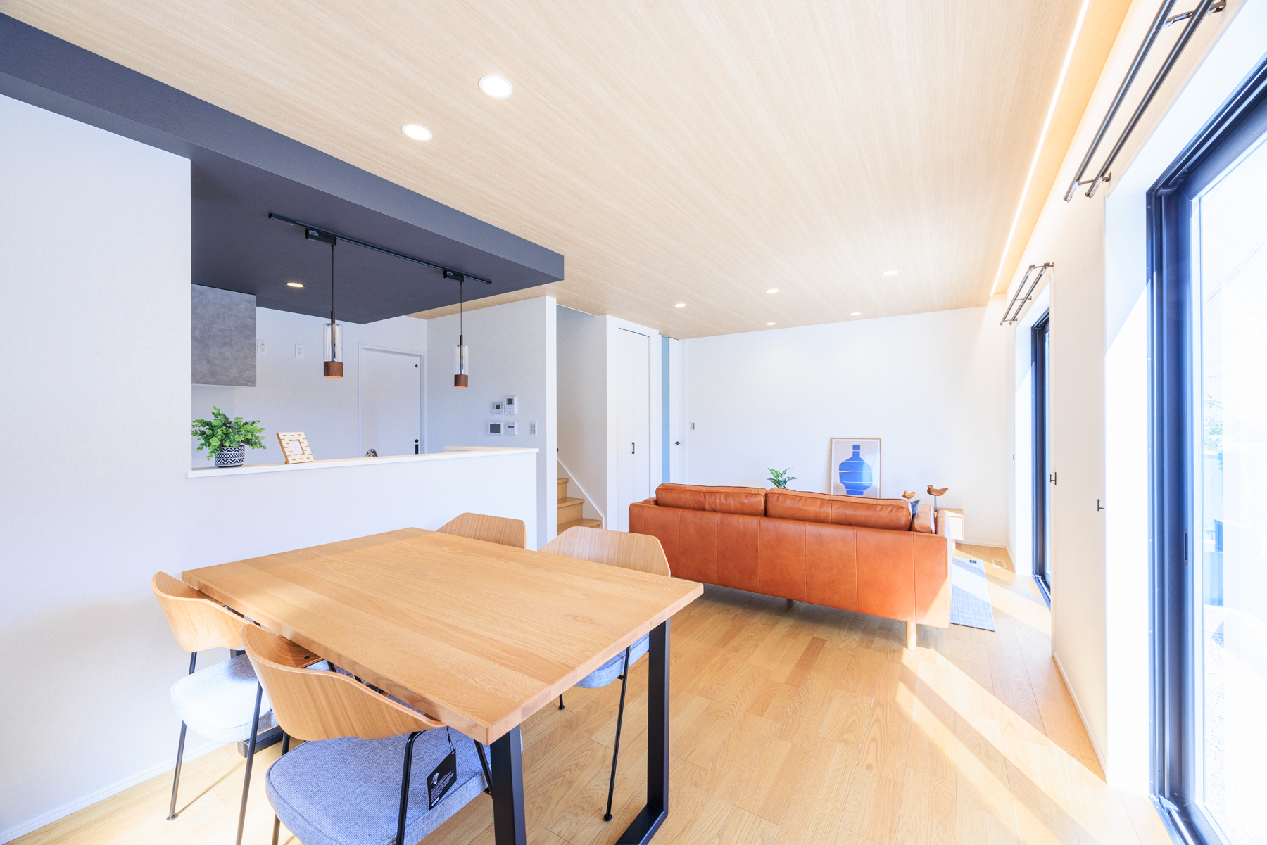 天井と床は明るい木目となっており室内をより明るく、統一感を演出しています。
