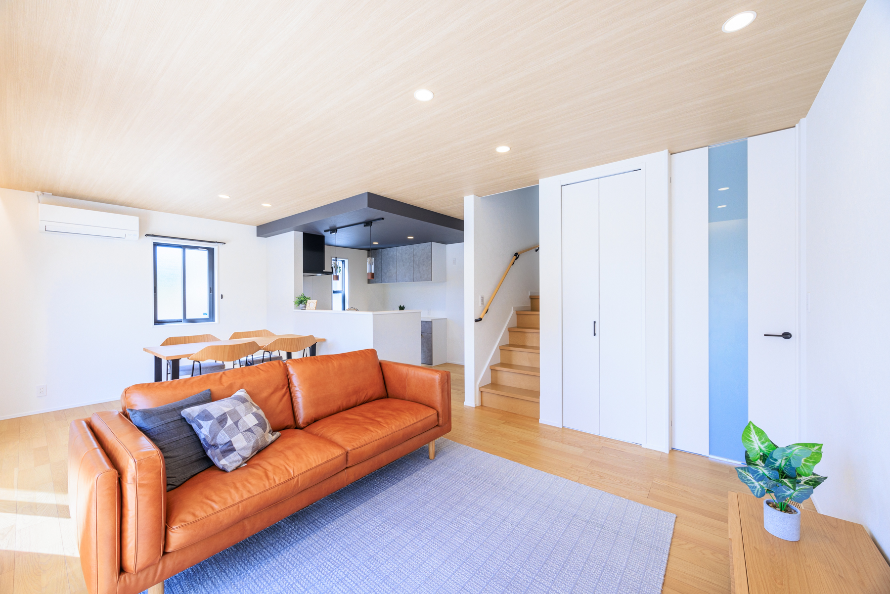 リビングには大容量収納を設けており、家族の共有空間がスッキリ片付きます。