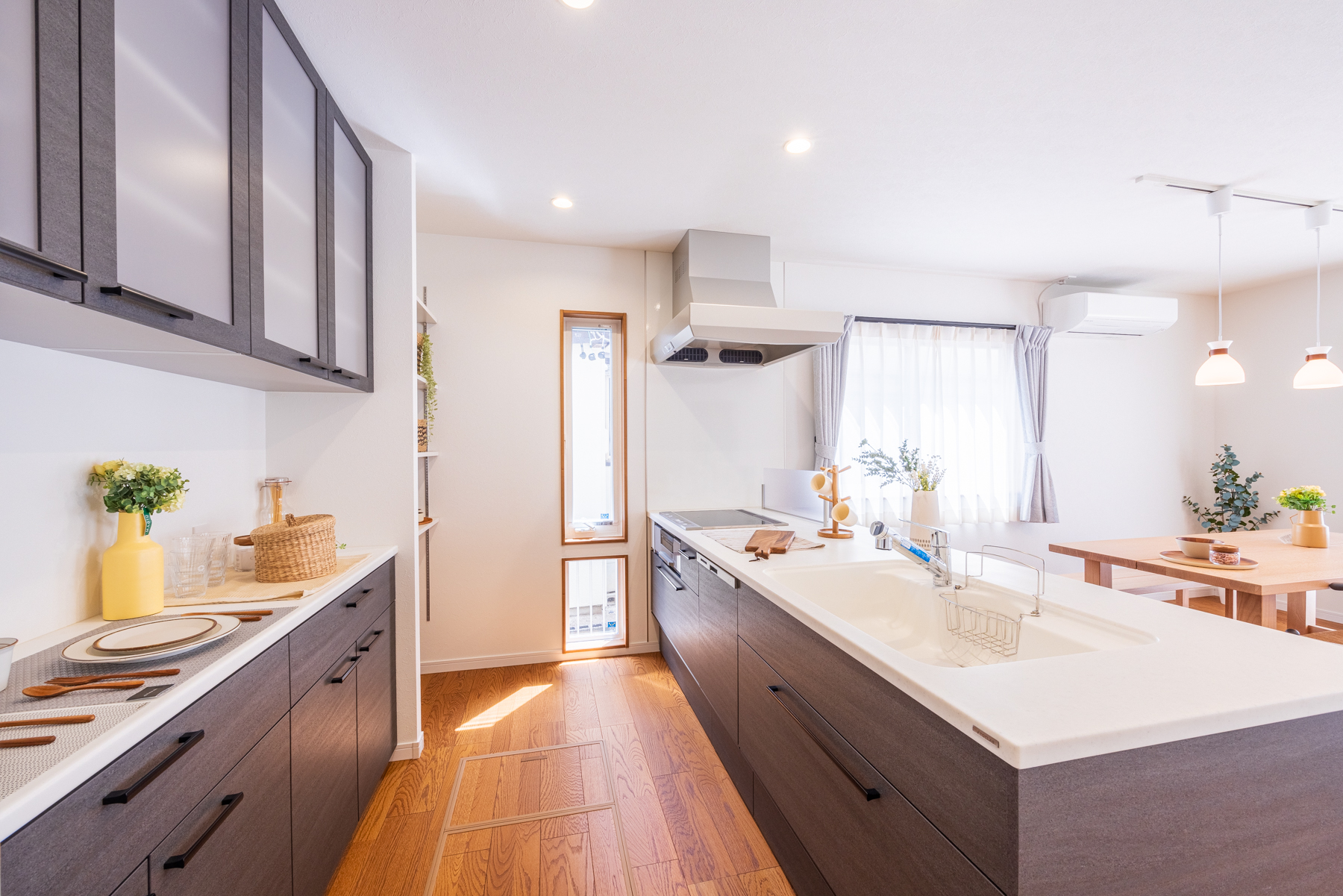 熱や衝撃に強い人造大理石のキッチンカウンターを採用しています。汚れにも強く、水拭きだけで簡単に汚れを落とせ長く綺麗に使っていただけます。 -