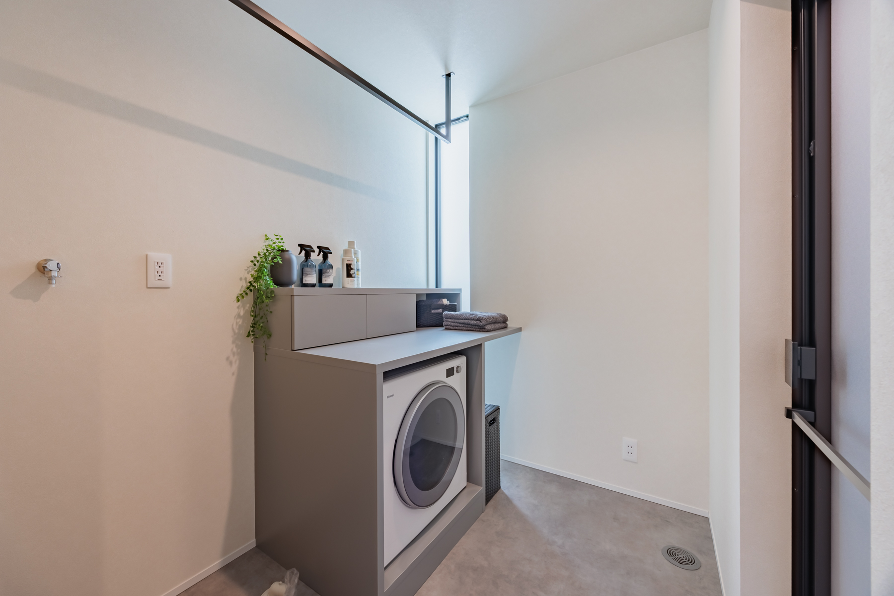 「乾太くん」を備えたランドリー横に、洗面室とFCL(ファミリークローゼット)を配置。洗う・乾かす・しまうが1箇所で完結し、家事時間を劇的に短縮します。脱衣所と洗面所を分けた設計により、家族で重なる朝の時間もスムーズに身支度が可能。機能的な動線と収納力が、日々の暮らしに心地よいゆとりをもたらします。